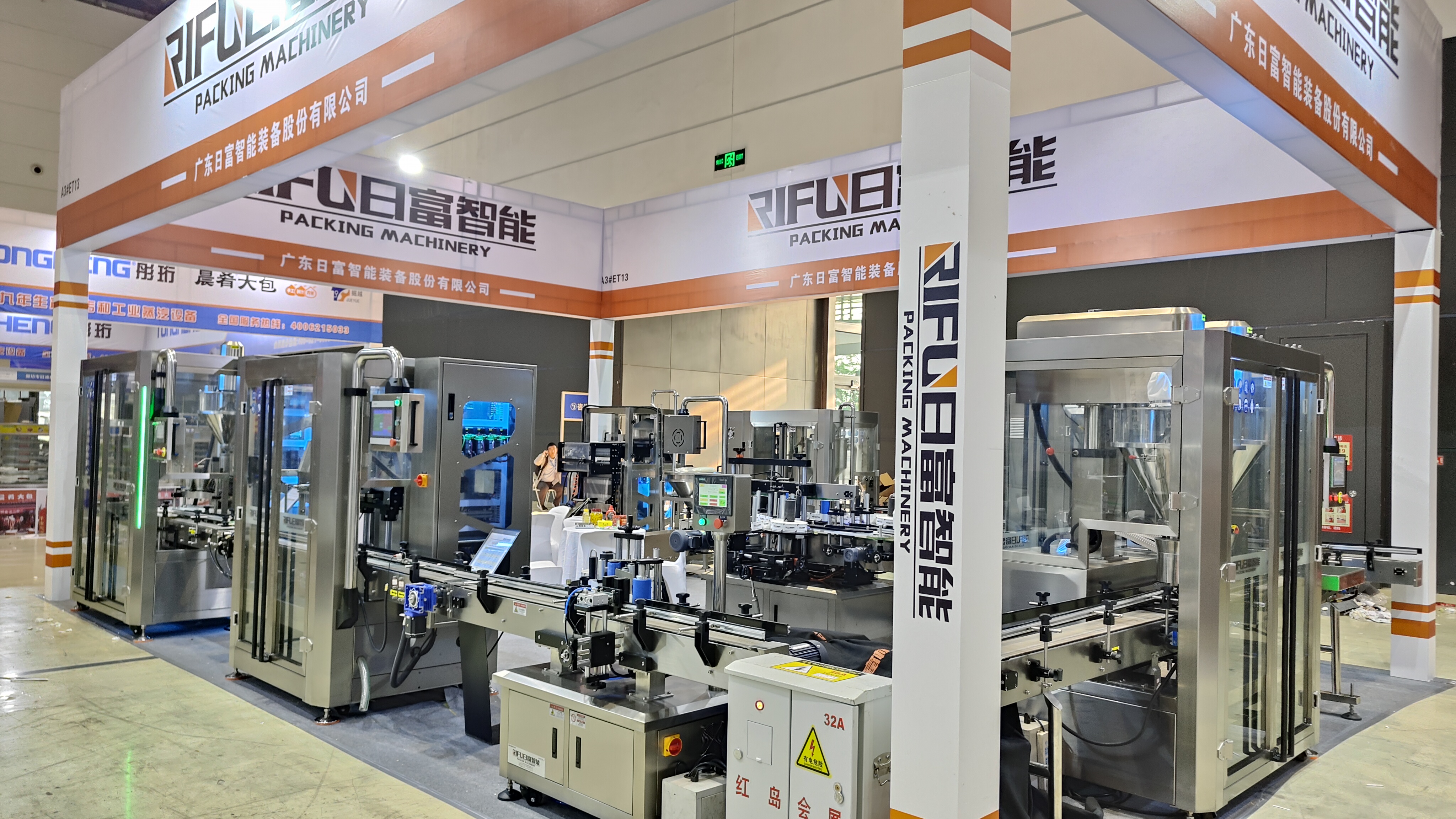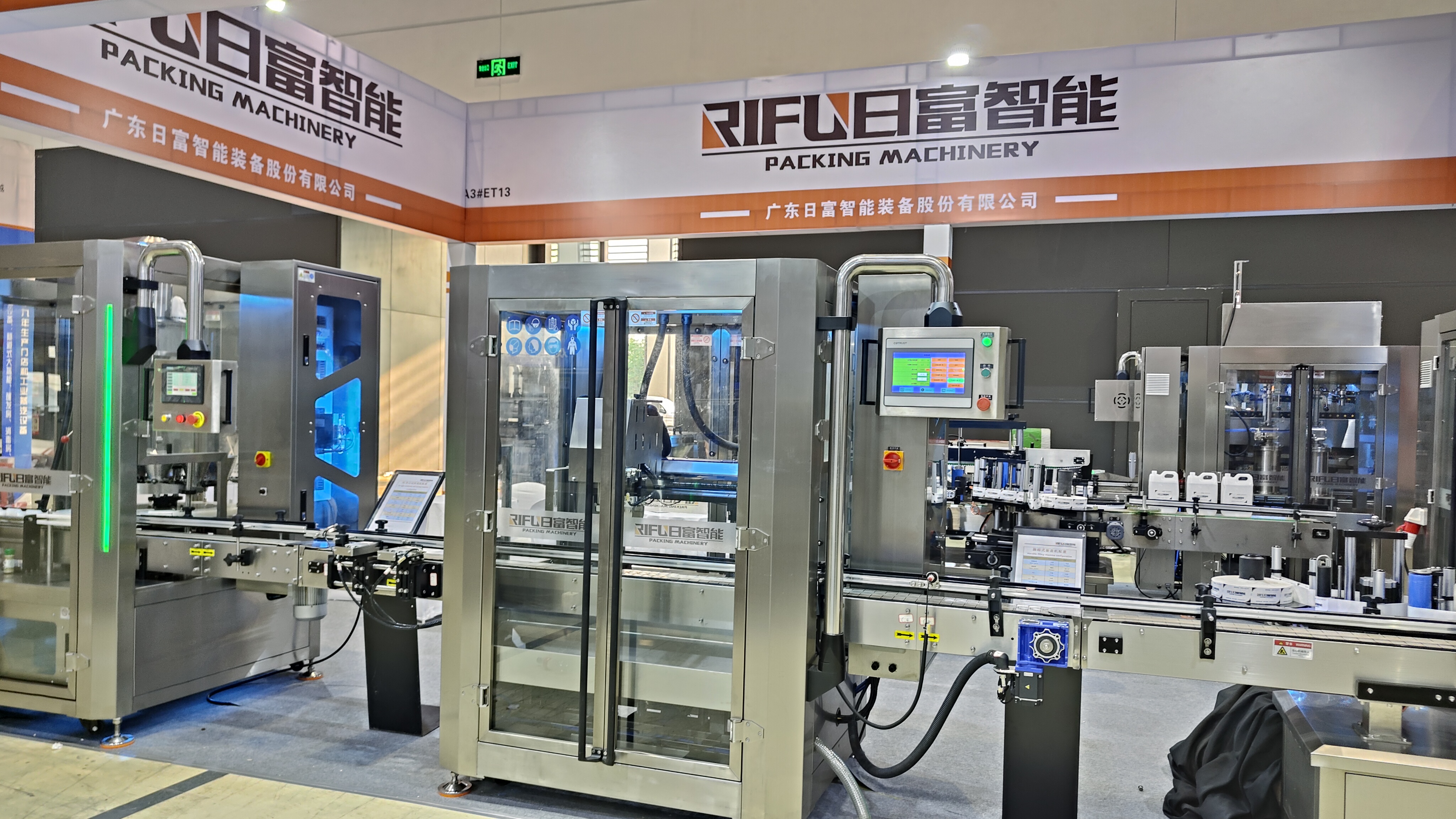 At this exhibition, RIFU Intelligent Equipment showcased a series of innovative products, including liquid filling machines, capping machines, labeling machines, double-head powder filling machines, and collar-type packaging machines. Among them, the liquid filling machine adopts a high-precision metering system, featuring fast filling speed and accurate measurement, which can meet the filling needs of liquids with different viscosities; the capping machine is equipped with an intelligent detection function, which can automatically complete the capping action to ensure a firm seal of the bottle cap; the double-head powder filling machine is suitable for various powdery materials, and its double-filling head design greatly improves production efficiency; the collar-type packaging machine can complete the packaging process quickly and stably with advanced forming technology, presenting an exquisite packaging effect. These devices not only have high production capacity but also incorporate advanced intelligent control technology, which can meet the diverse and high-precision production requirements of the food industry.