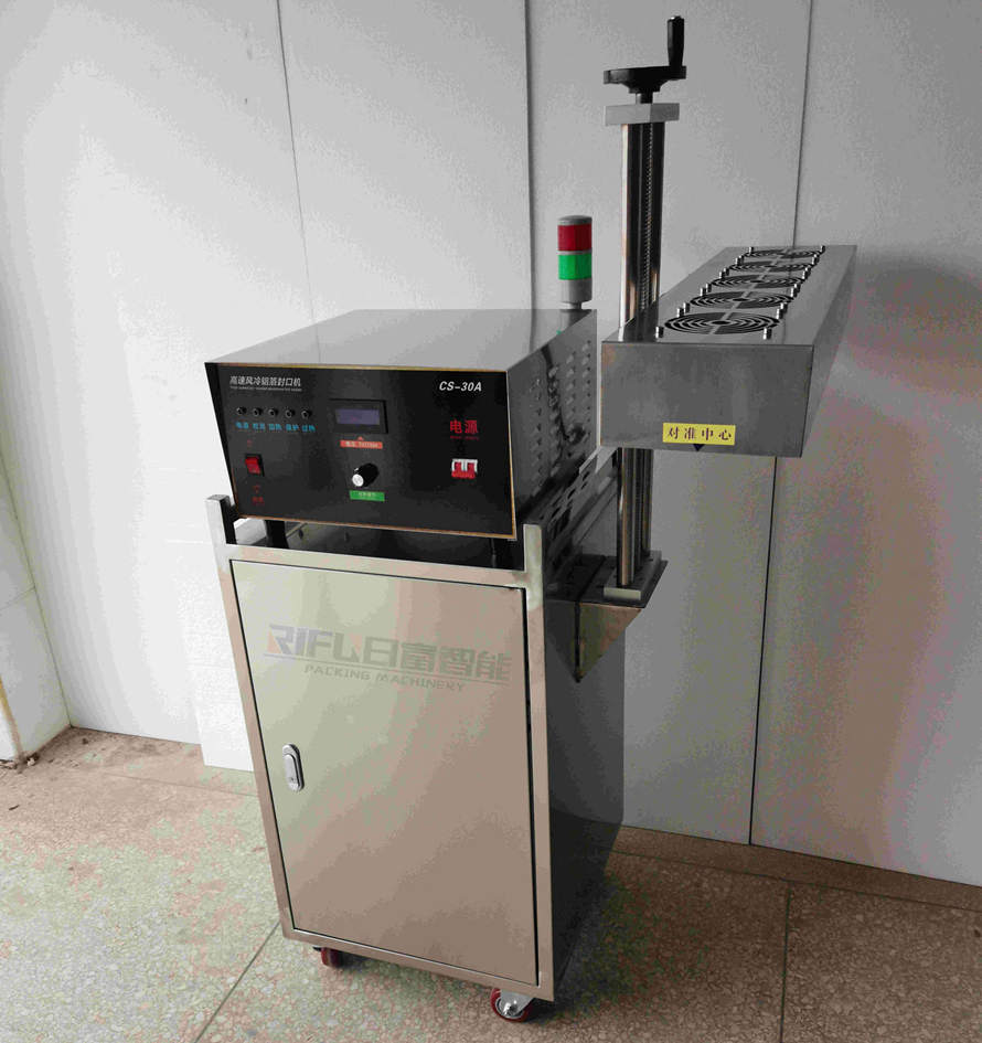 This machine is an air-cooled high-power dual-drive electromagnetic induction aluminum foil sealing machine. It is mainly researched and developed for the sealing characteristics of wide mouth bottles. It satisfies the beautiful requirements of large-caliber sealing. It has advanced functions and simple operation.The properties and characteristics of the product can be adjusted by power to achieve the purpose of firm and beautiful product sealing.