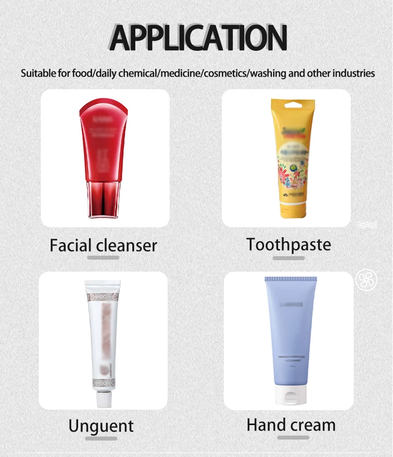 • Skin Care Products: Facial cleanser, eye cream, hand cream, body lotion, sunscreen lotion, essence, moisturizing cream, neck cream, sleeping mask, exfoliating gel, body wash.• Cosmetic Products: Lipstick, liquid foundation, blush, lip gloss, hair dye, hair colorant, hair treatment mask, shampoo paste.• Medical Products: Medical ointment, dental filling material, eye ointment, scald ointment, hemorrhoid ointment, antipruritic ointment, rheumatism ointment, skin repair ointment.• Food Products: Tomato sauce, mustard sauce, chocolate sauce, peanut butter, salad sauce, jam, honey, condensed milk, curry sauce, matcha sauce, blueberry sauce.• Industrial Products: Sealant, lubricating grease, metal repair paste, electronic thermal paste, glue, adhesive.