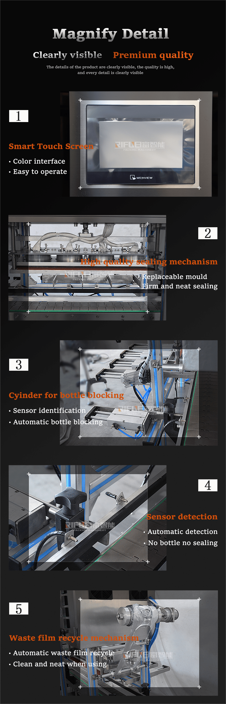 The machine is designed for sealing all kinds of bottles and barrels. Gathered function of film sealing and cutting It is widely used in food, pharmaceutical, chemical, cosmetics and other industries.
