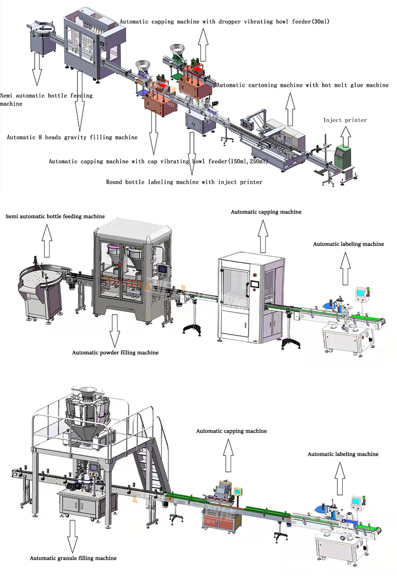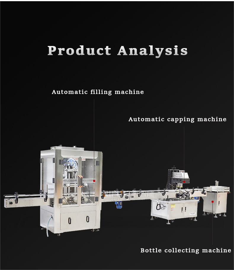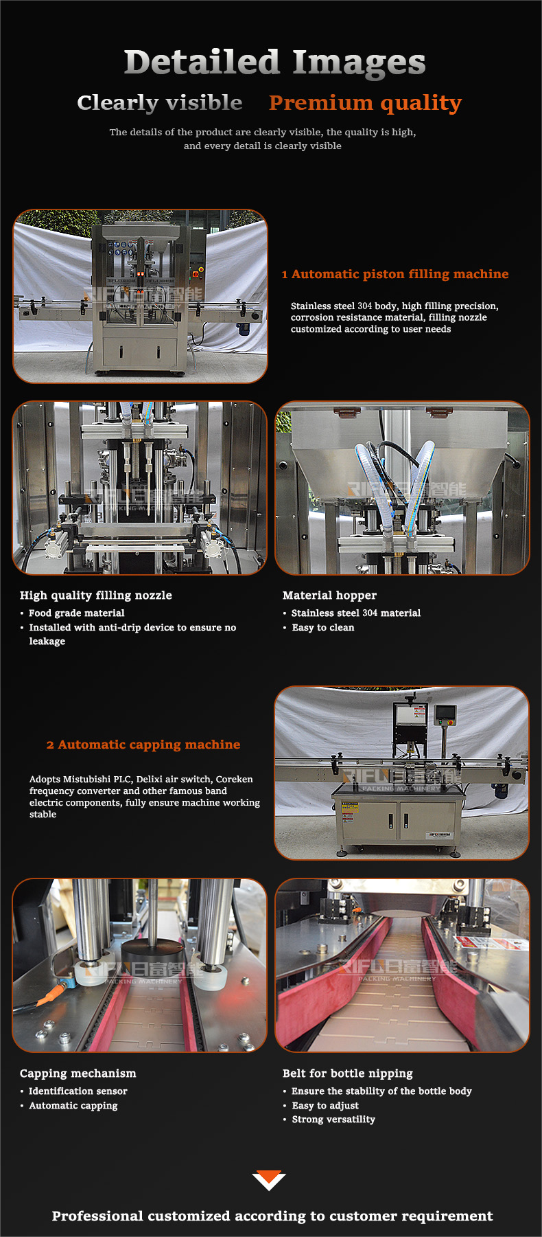 The filling production line is suitable for filling viscous liquid material, such as ketchup, oyster sauce, jam, chili sauce and so on. The whole line can complete filling and capping at one time. With international famous brand electrical and pneumatic components, it works very stably. Automatically controlled by PLC, the touch screen displays the working status and operation instructions in English, which is simple and clear. High-quality stainless steel frames, very easy to clean and maintain.