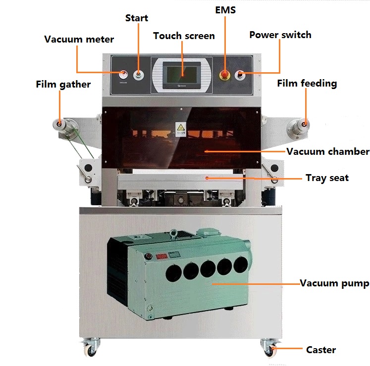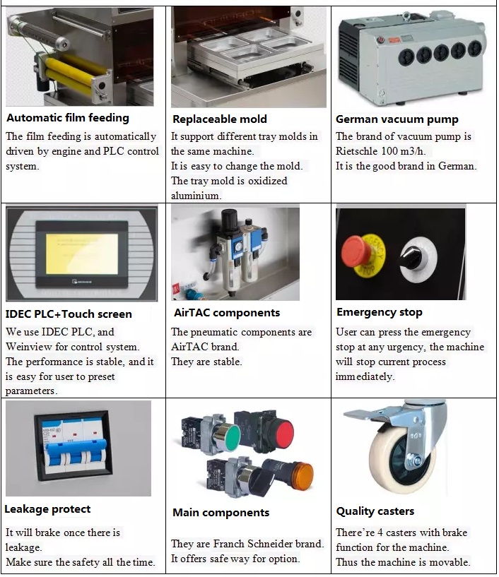 * It can pack several trays at the same time, which depends on your actual tray size. Accordingly to actual tray sample, the tooling of machine will be individually built for client.