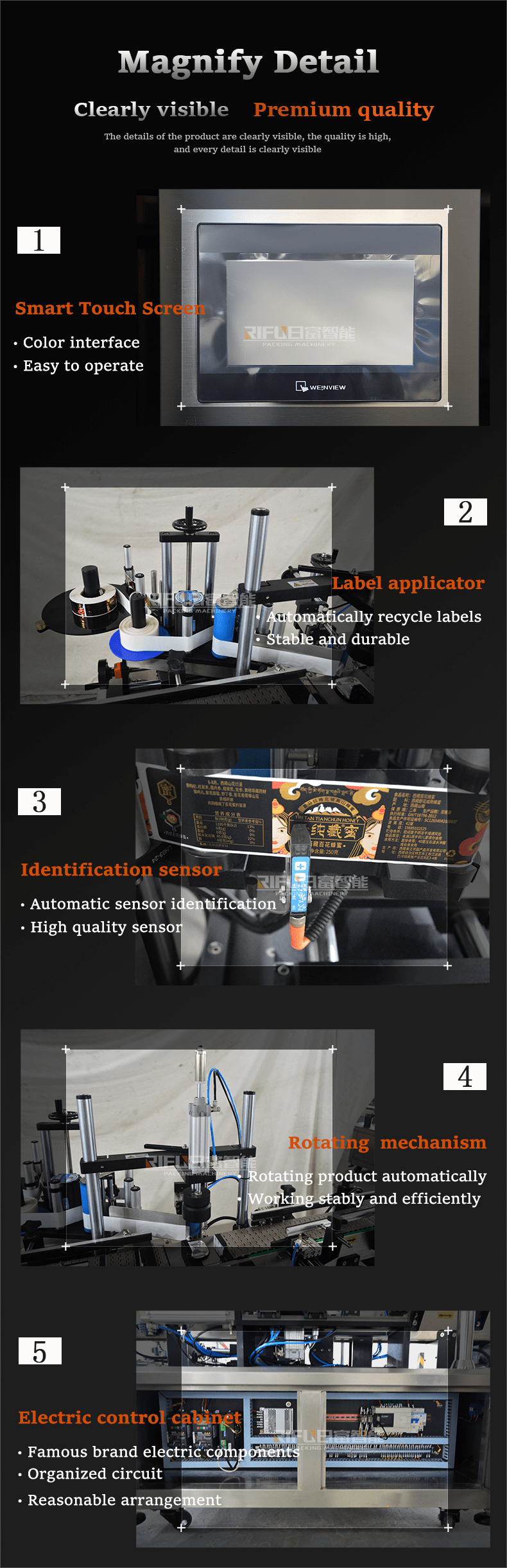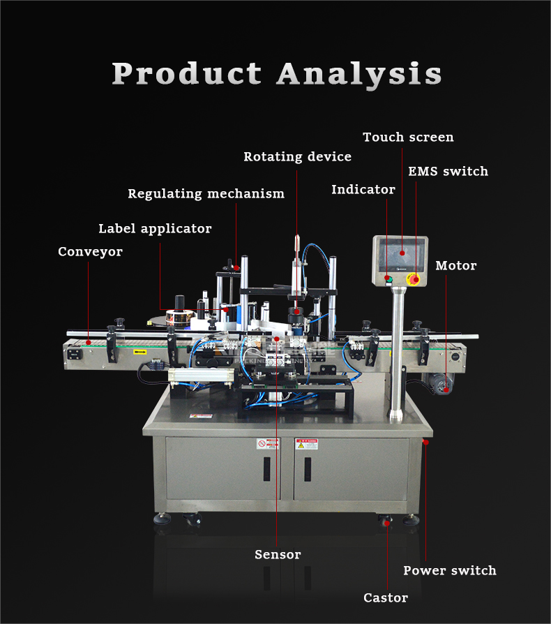 This automatic labeling machine is suitable for attaching a piece of label to multi-sides of a square bottle, jar, can and other square containers. Widely applicable to food, medicine, daily chemical and other industries. The machine can finish the labeling work separately, but also can be connected with other production machines to realize the whole line to complete the entire production process of products. And code printer can be added on the labeling head, used to print production date or QR code on the label,reducing labor and increasing output.