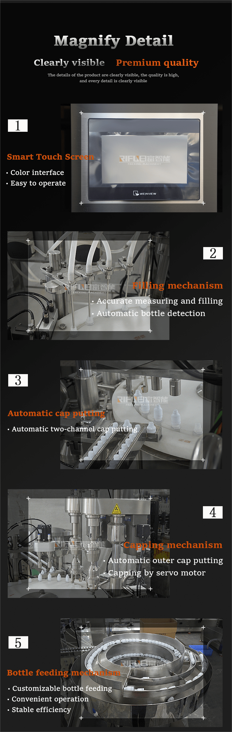 Guangdong Rifu Intelligent Equipment Co.,Ltd is an efficient and technology enterprise. Professional manufacturing filling machine, capping machine, labeling machine, filling sealing machine, vacuum packing machine, vertical packing machine, heat shrinking packingmachine, cellophane wrapping machine, etc. We have own excellent team and a high level of equipment manufacturing personnel. Dedicated to strict quality control and thoughtful customer service. Has many of the world's countries and regions to establish long-term and friendly business.