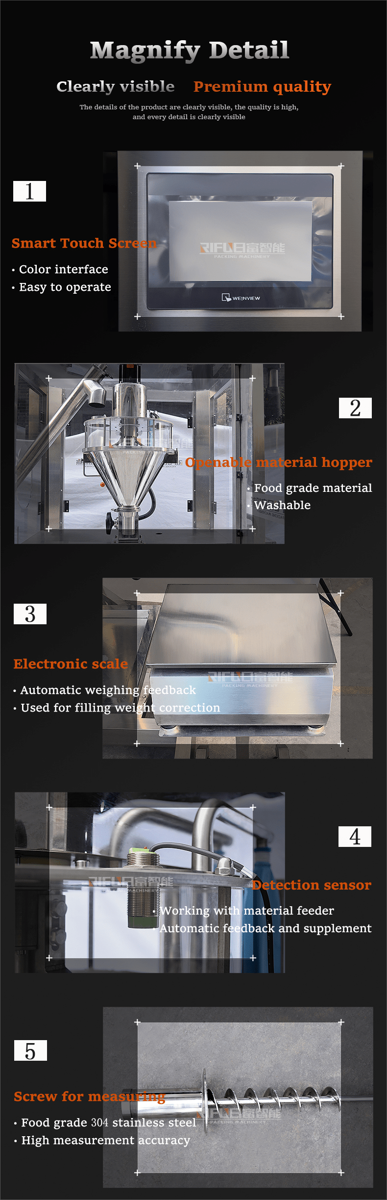 1) The whole machine is mainly made of stainless steel 304.