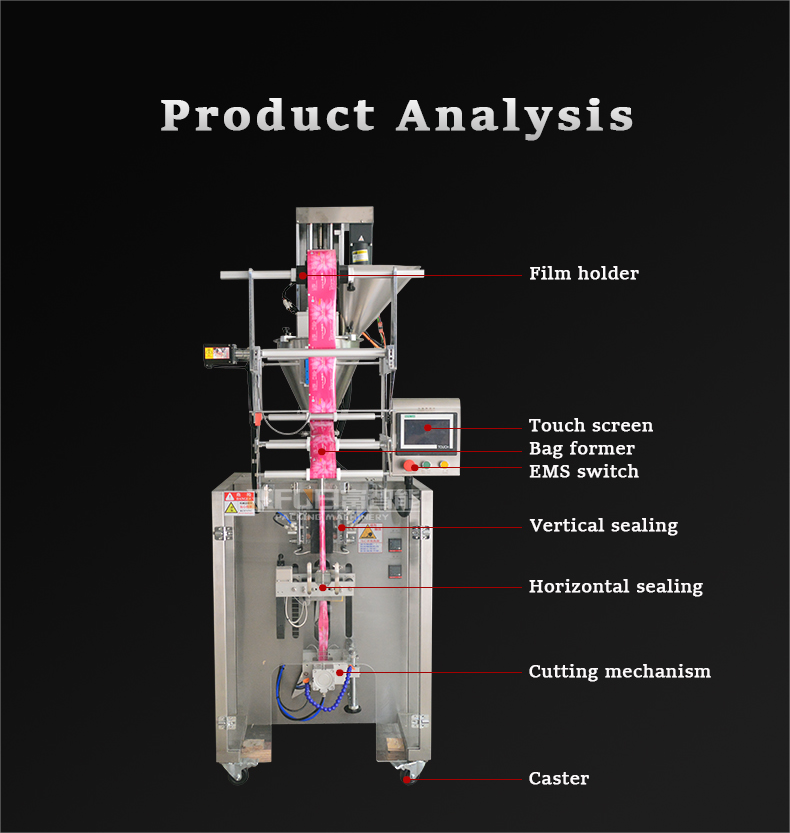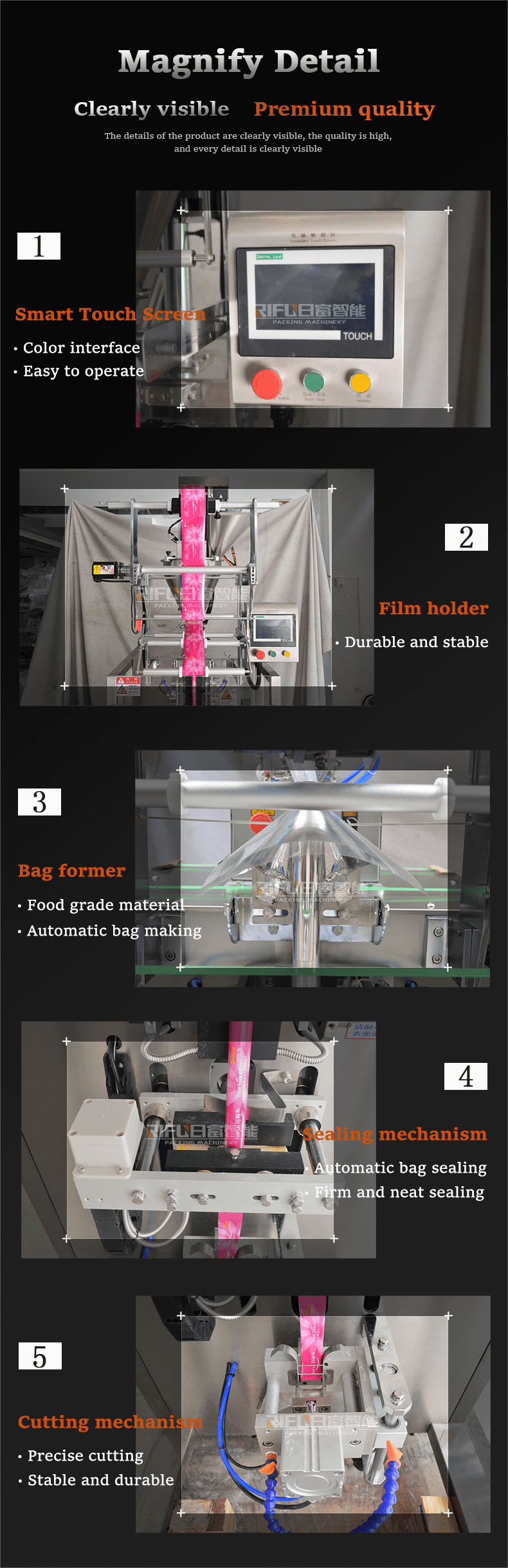 1. Weighing, bag making, filling, sealing, cutting and counting can be done automatically.