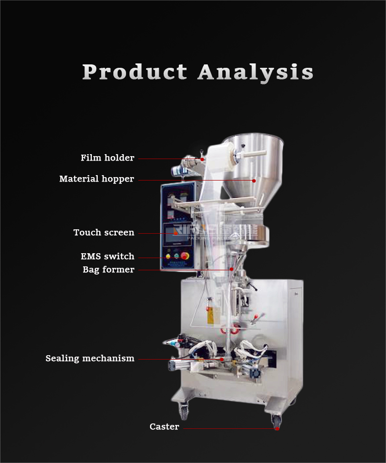 1.Touch screen operation, PLC control, drive stepper motor to control the bag length, stable performance, easy to adjust and accurate detection.